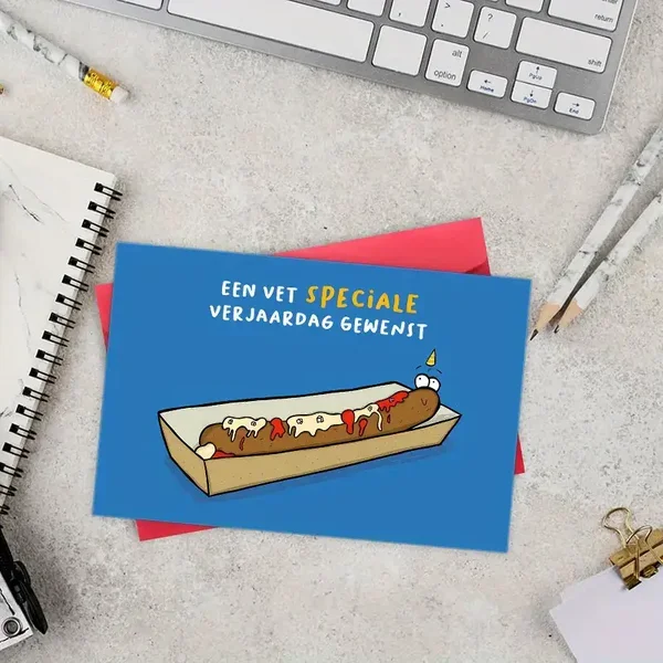 Deze kaart is perfect voor iedereen met gevoel voor humor (en een beetje lef). Of je nu iemand flink aan het lachen wil maken of gewoon iets anders zoekt dan die standaard, brave kaarten – dit is ‘m!